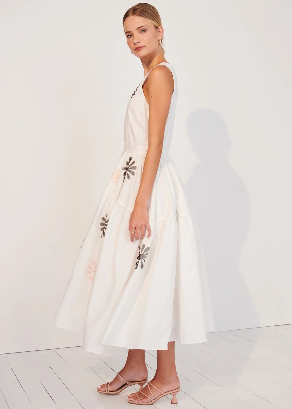 Made from pure cotton with a hand designed organza flower apliques in Black and Pink, the Chiara Midi Dress is an easy to wear style with gorgeous detailing.