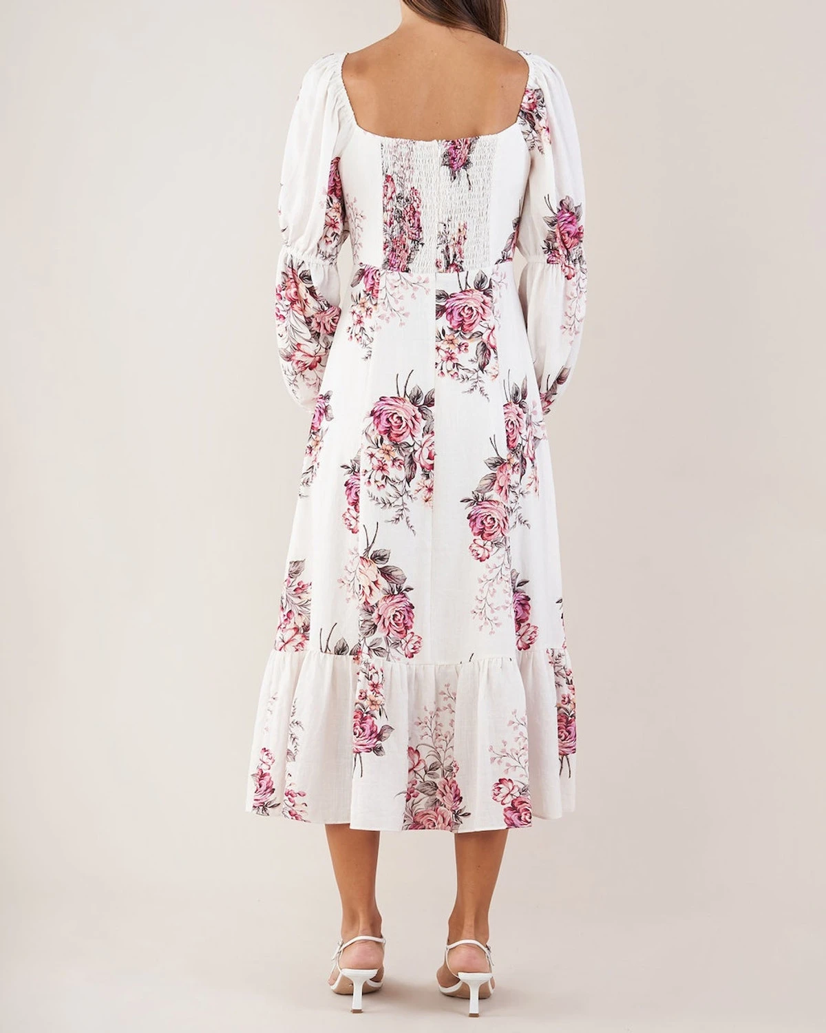 Meet the Heartloom Sleeved Dress, your new favourite staple to spend this season’s events in. Beautifully spun from a cotton linen blend fabrication, it features an exclusive floral print elevated by blushed toned roses, full length blouson sleeves, a flattering square neckline, shirred back for added comfort, invisible zipper and an a-line cut for easy movement. This dress will effortlessly translate across any occasion.