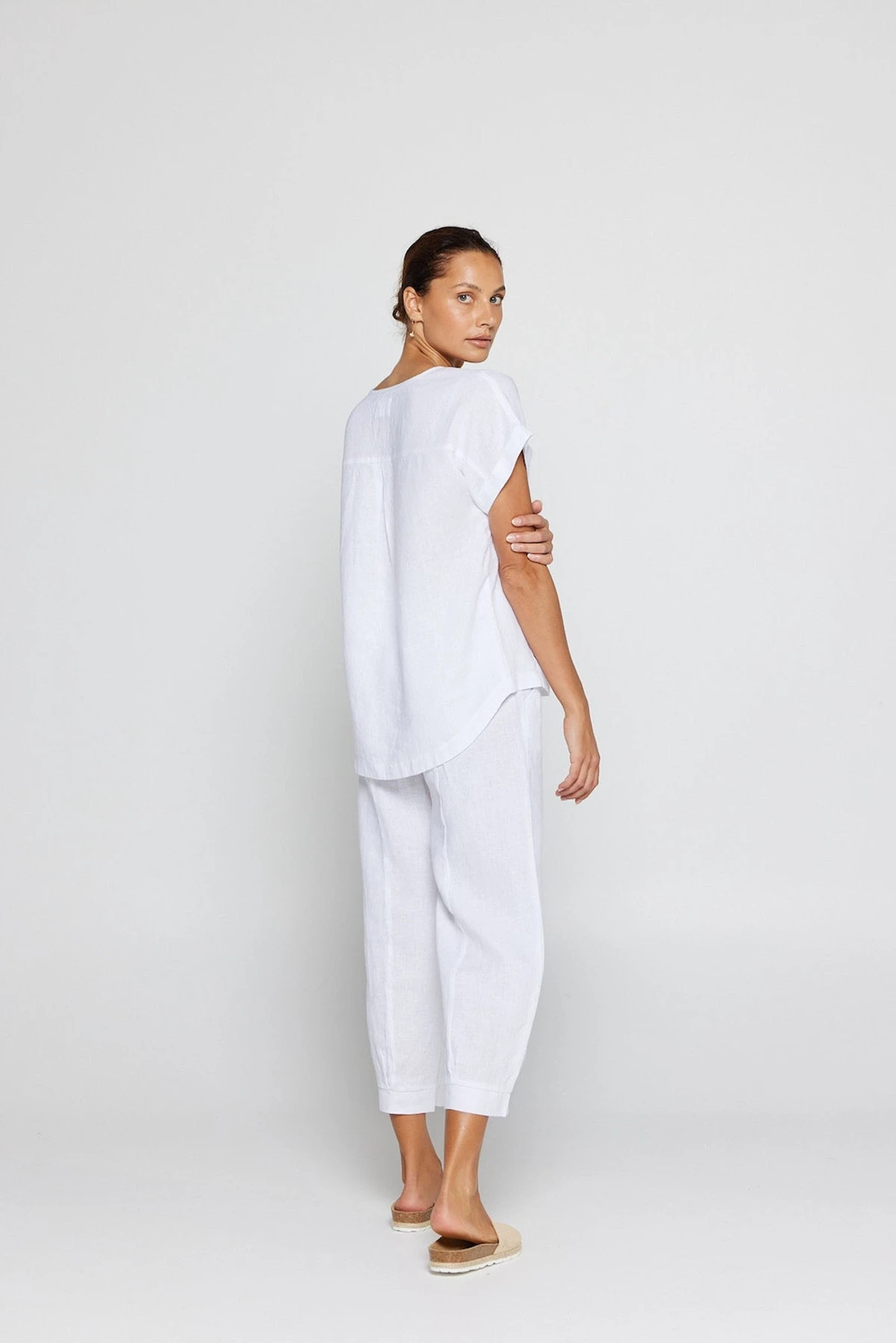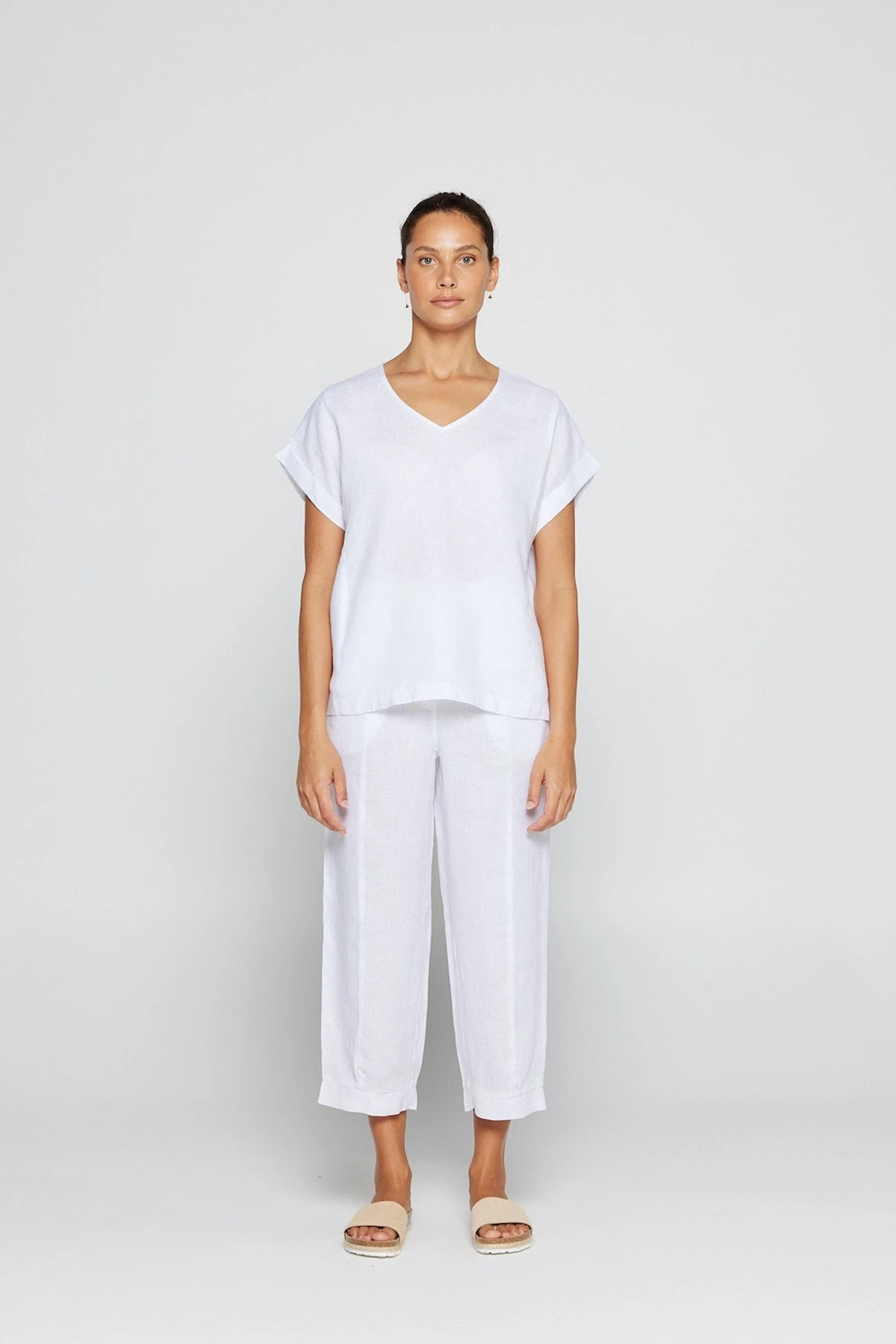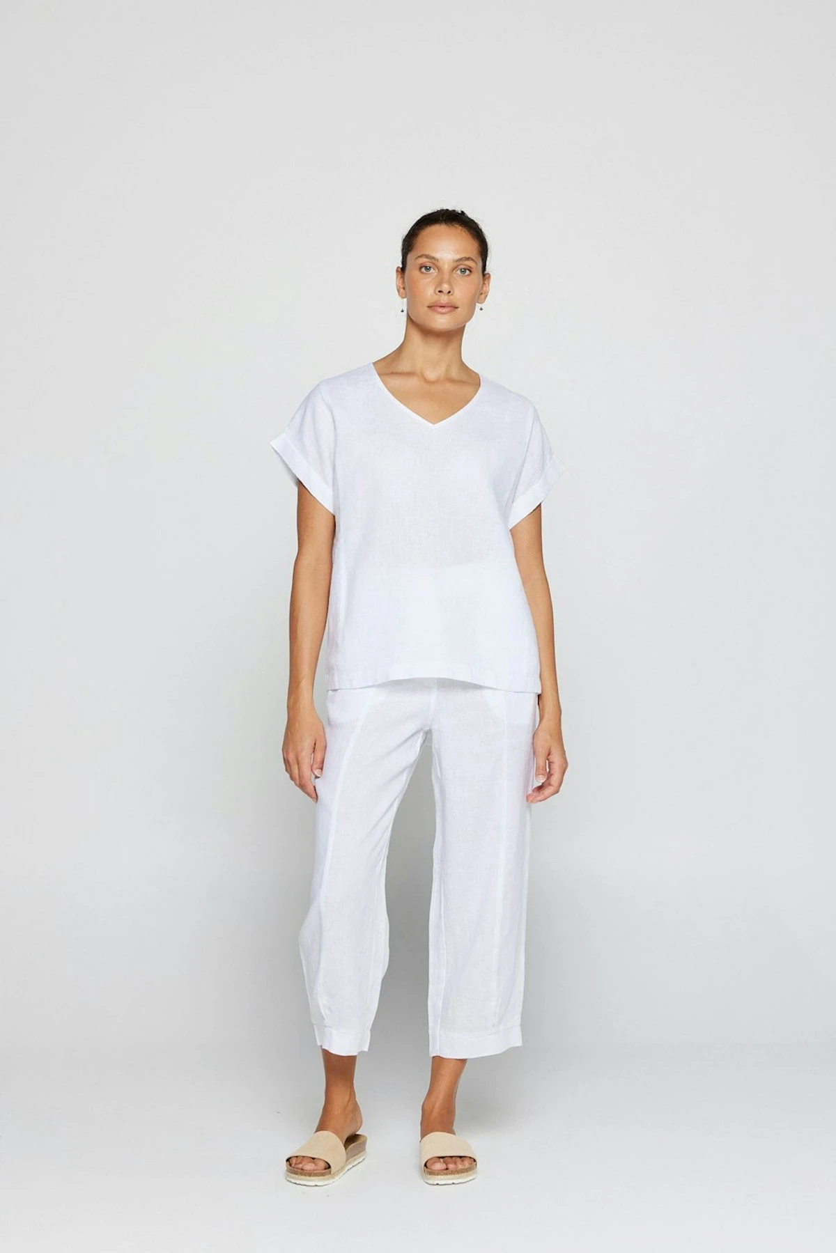 The By Ridley Lacey Tee made from 100% Linen is a new take on a By Ridley favourite. Featuring a V neckline, panels, and sleeve cuff this classic tee is a wardrobe staple. Perfect to style with your favourite linen pant.