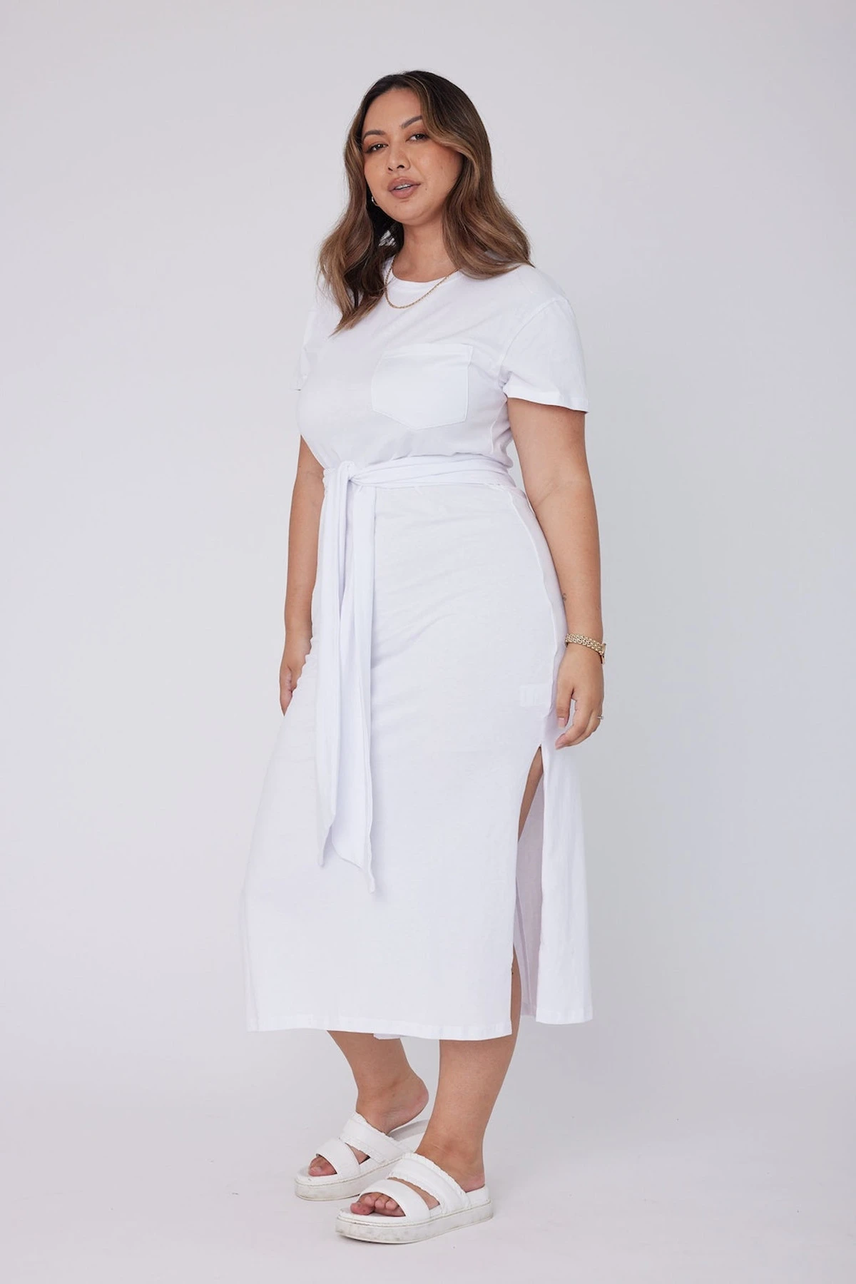 Amp up that casual dress with the Saltum in White. Details such as a waist tie and chest pocket will elevate your laidback everyday look. Let the waist tie accentuate your curves too. Style it with funky sneakers or chunky sandals for that edgy look.
