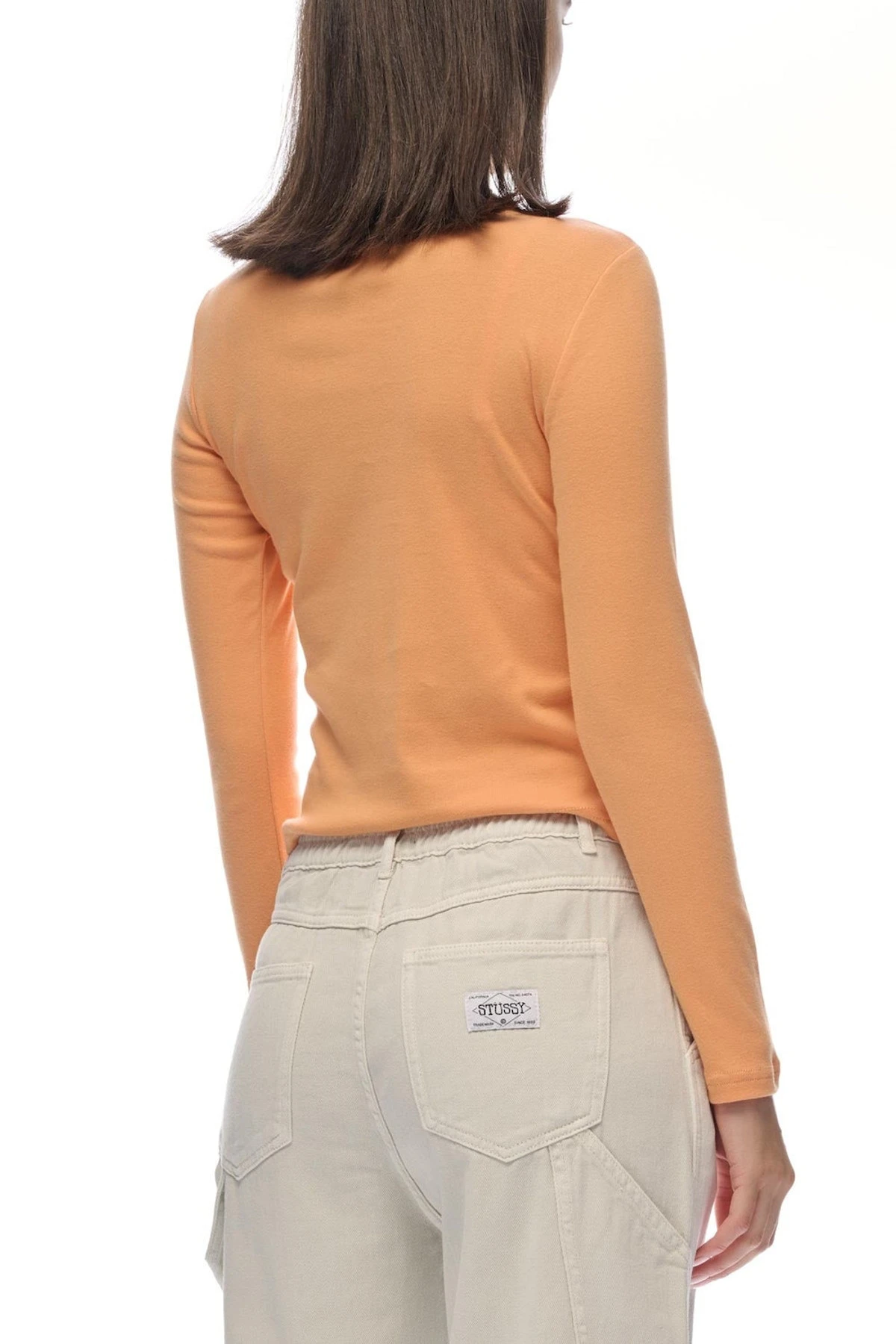 The Stussy 8ball LS Rib Tee in Apricot is a LS fitted tee in a cropped length featuring CF chest satin stitched embroidery & self fabric neck binding. Made from 220gsm 100% Cotton 1×1 Rib